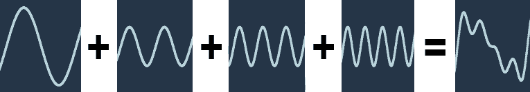 If we take a sine wave that comes and goes 200 times a second, and mix it with other sine waves that cycle twice as often, three times as often, four times as often... the result is a more complex wave.